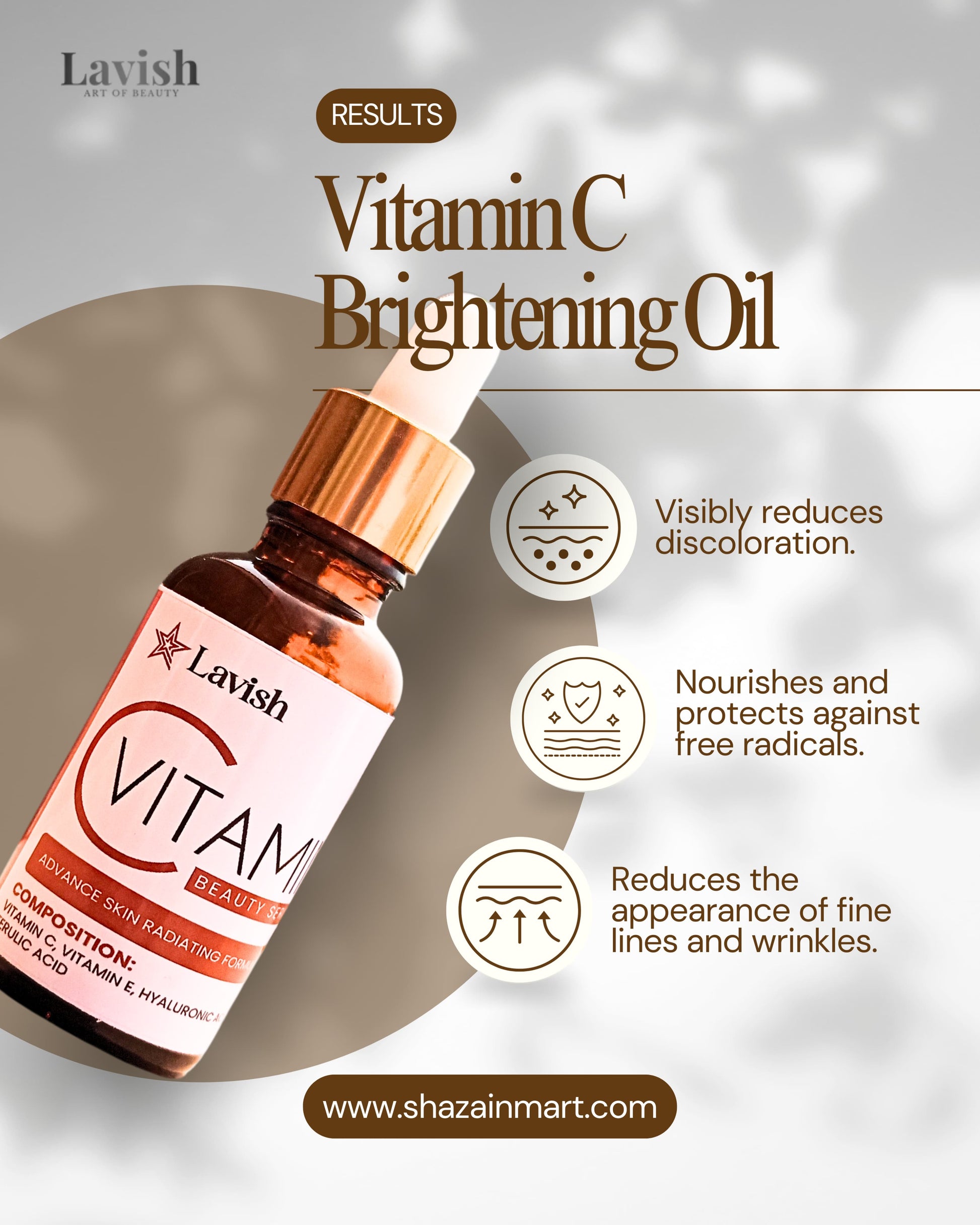 Discover the radiant glow your skin deserves with LavishByFS Shine Bright Anti-OX Vitamin C Serum, designed to brighten, hydrate, and protect for visibly youthful vitality.